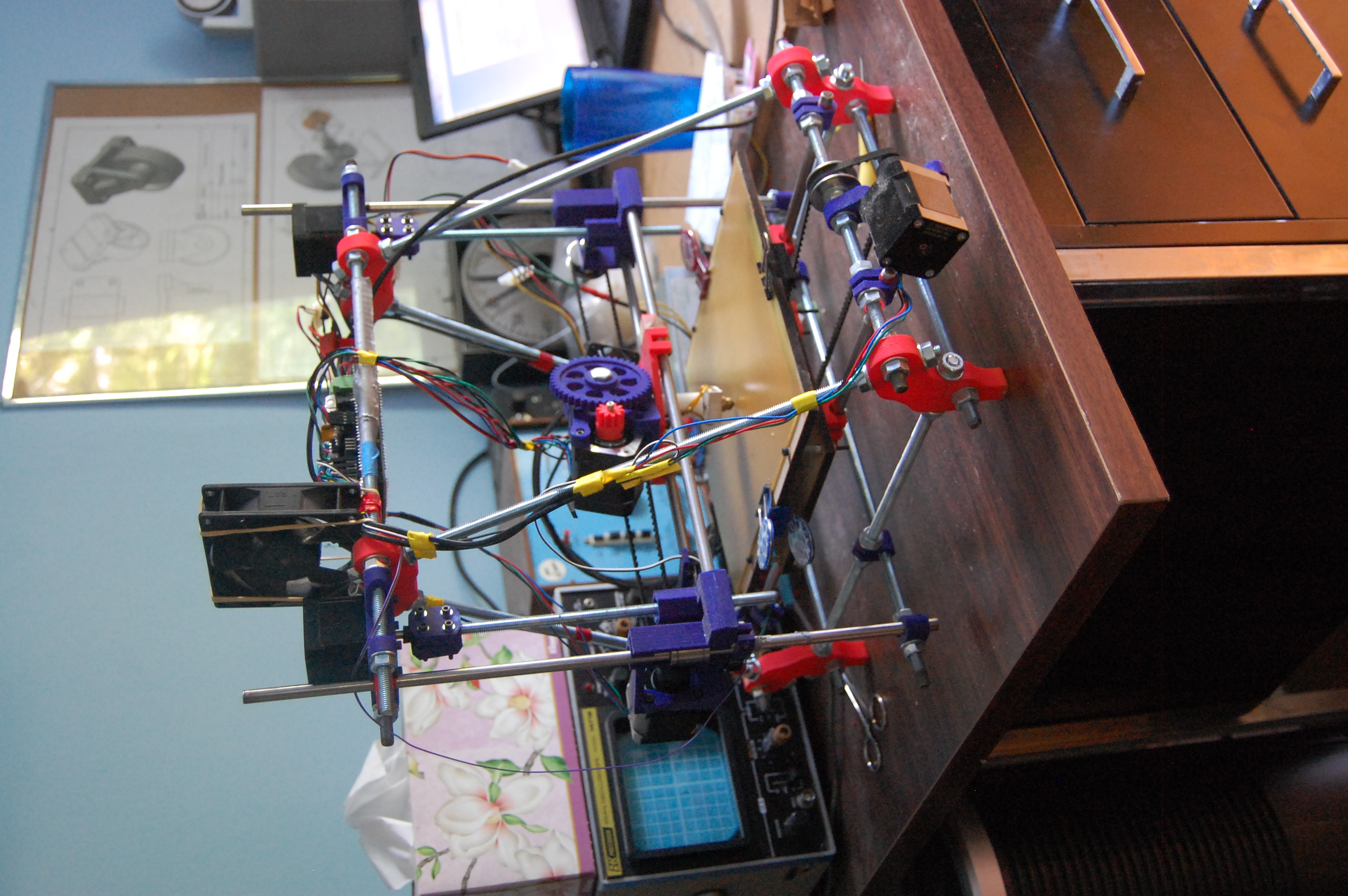 In the process of polishing the Reprap, I dediced to make a heated print bed. These beds improve print quality by helping the plastic adhere to the bed. During the build, the lowest layers of plastic are warmed by the plate. As the plastics cool, they shrink and detach from the bed. A heated bed prevents that shrinkage.