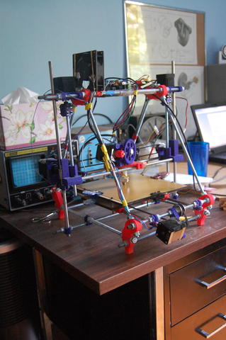 It came in the mail yesturday, practically bursting with that new electronics smell. I soldered it together, with the header pins lined up just so. Then I dropped it into the RepRap and turned everything on.