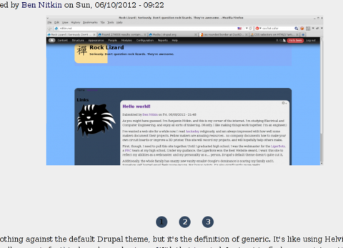 I have nothing against the default Drupal theme, but it's the definition of generic. It's like using Helvitica (an intentionally generic font) to brand your business. With that in mind, I set out to find a more interesting theme for this site.