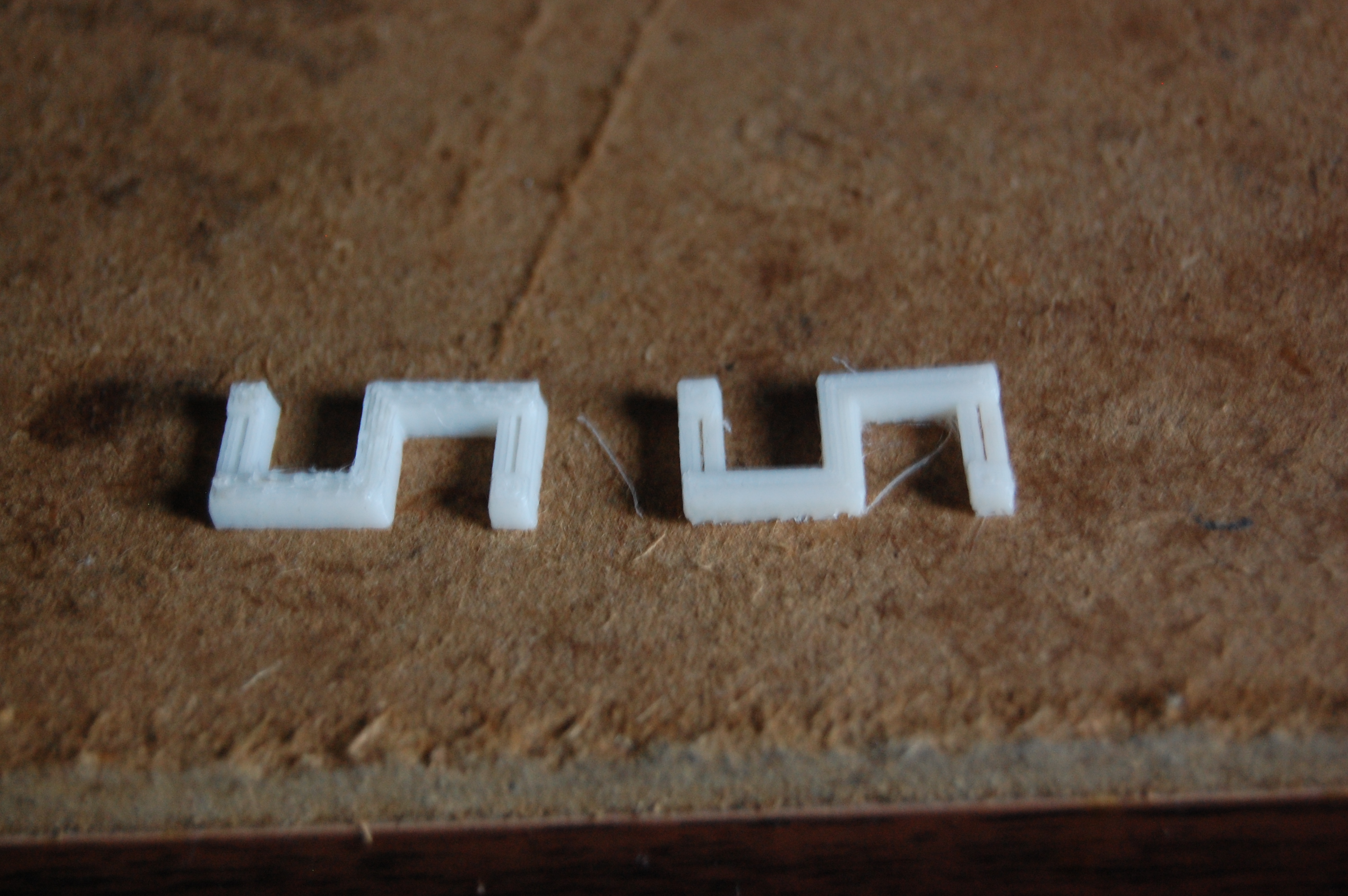 As the title suggests, today I made my first real prints. I've been having trouble with tensioning the y-axis belt, and Thingiverse had a printable tensioner. Perfect! I printed two. I also found a model of Curiosity, which piqued my interest. As I was printing, I found a problem with the extruder: as it runs, the PFTE insulator heats up to the point where the PLA may become elastic before entering the heating chamber. The pressurized PLA squeezes itself into a plug just before entering the PFTE insulator, and stops the flow of plastic. Without new plastic entering the barrel, flow slows, then stops, ruining the print.