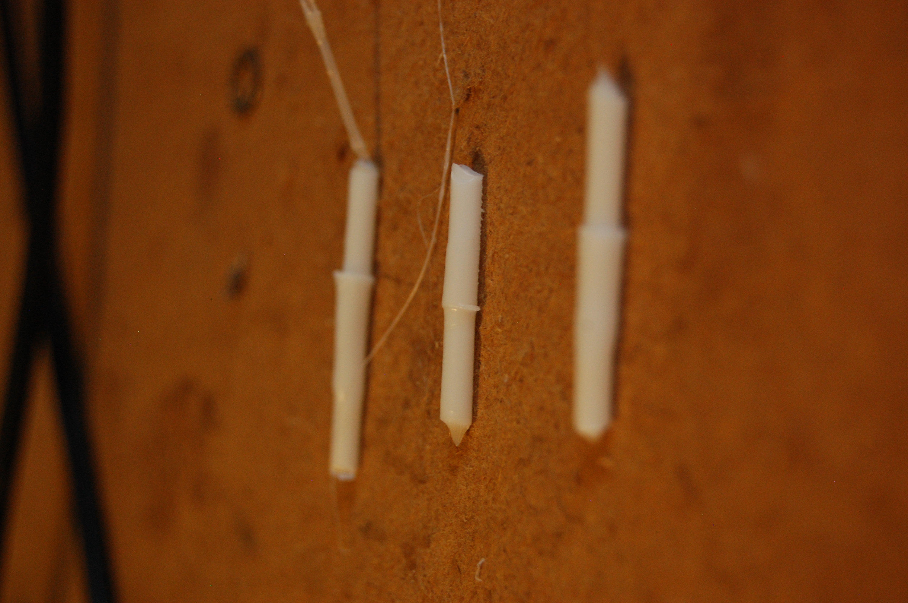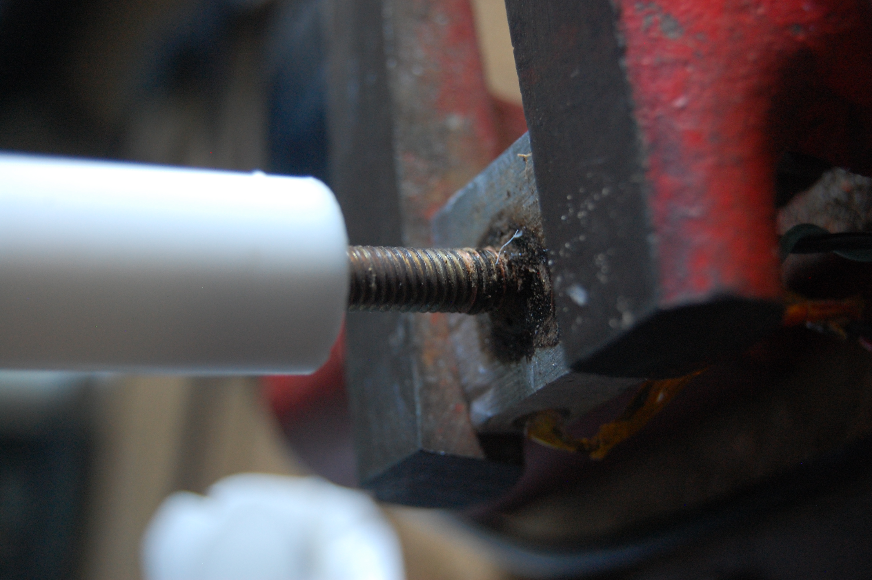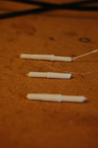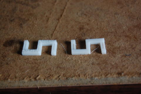 That hints at my next project: rebuilding the hot end to be less of a miserable failure. The one I have consists of a brass rod, drilled into a PFTE insulator. The insulator fits into the bottom of the extruder, and the other end of the rod houses the heater block and extruder head. Problem is, I drilled the brass rod in too far, so even the top of the insulator is hot enough to warp PLA. Under the pressure, it jams. I found a design on the Reprap Builders blog that did away with the PFTE almost entirely. The designer reported that it worked well and required few parts above the stock hot end. That design was based on another on Thingiverse. Both designs use metal bits as heat sinks to replace the PFTE liner. There are two advantages to this construction: first, it removes the metal-plastic junction, which is a common point of failure. Second, the end of the extruder is kept cold, preventing the jams I had.
