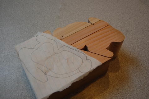 Construction began by tracing the outline of the boxes' side onto the wood. The bandsaw made quick work of the outline. After much too much sanding, we had a pair of bunny-shaped blanks. A hole through the eyes would become a hinge point when the box was finished.
