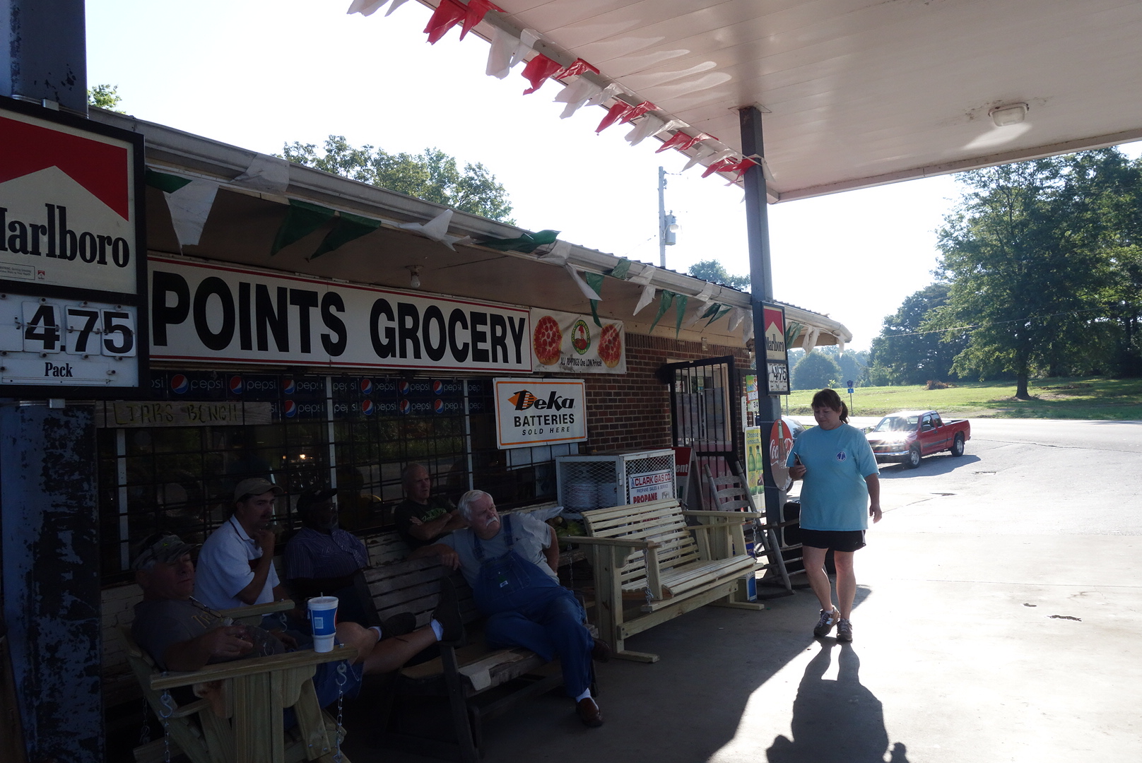 Today's ride took us around 75 miles into Hamilton, AL. Early in the ride, we ran into a bunch of friendly old folks hanging out at a gas station. A sign hung over their seats pronouncing "LIARS BENCH". They'd seen B&B come through in past years and were curious what we were all about.