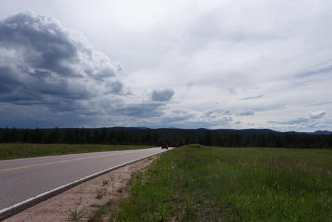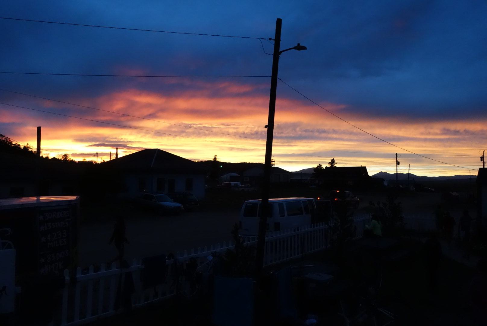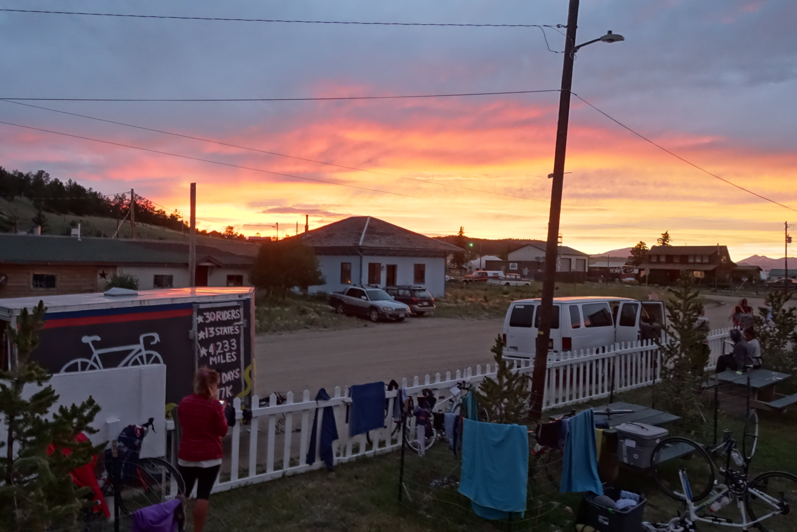 I was sweeping again today, so I hung out at the back with Andrew. Fortunately, no one has any major mechanical issues today. Unfortunately, a few weren't feeling up to biking after a week off, so we spent a lot of time roadside waiting for people to catch their breath. We can usually bang out 85 miles in 8 or 9 hours, but Andrew and I were on the road for 12. At around for miles from Hartsel, the van came for us as we ran out of daylight.