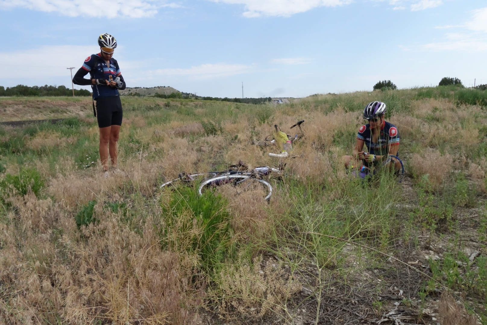 We had two choices of route today: either ride 116 miles through back roads (maybe mountains, maybe plains) or ride 54 miles on highway 25 (riding on the highway is legal in some sections). As a group, we voted to take the highway and be careful riding. It wasn't an especially pretty day, but the low mileage was nice.