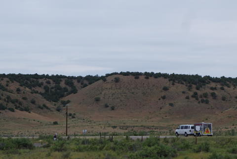 The ride was barren, but pretty. As we entered Utah, the terrain changed from rocky metamorphic mountains into something like petrified sand dunes, slow rolling sandy perks with only a hint of shrubbery growing on them.