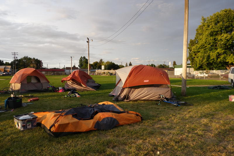 In Snowville, we set up in a small city park, for want of anywhere to camp. It was a little weird.