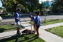 The owners have already moved in, so we chatted with the wife. Her children helped a little bit with digging fenceposts.