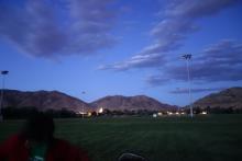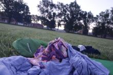 Sleeping out under the stars. Always nice, especially with a warm sleeping bag. Irrigated lawn notwithstanding, we are in a desert.