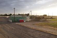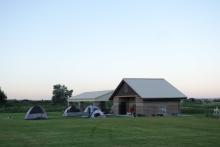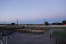 The tennis court we slept in, at dawn