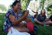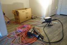 When Helen and I woke up this morning, we were surprised to find high winds making life difficult for those in tents. Overnight lows notwithstanding, we all headed out around 9 to work on a build site for a while. They had a little interior work - cutting trim and wiring - that I helped out with. Most of the group was in the front yard landscaping. (I didn't envy them: it was cold and wet.)