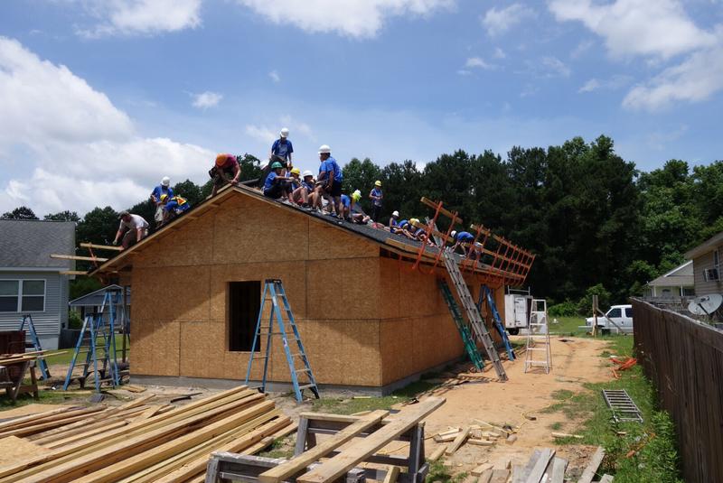 Today we participated in our first build day. The whole group laid an asphalt roof in a morning.