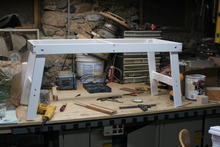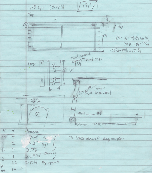 As long as I'm home, I decided to build one. As a design constraint, it's made entirely from 1x3 strapping. There is some reason for the choice. First, at $1.30 per 8' board, 1x3 is cheap. Second, the 1x3 theme matches a toolbox I built this summer. Third, it's cheap.